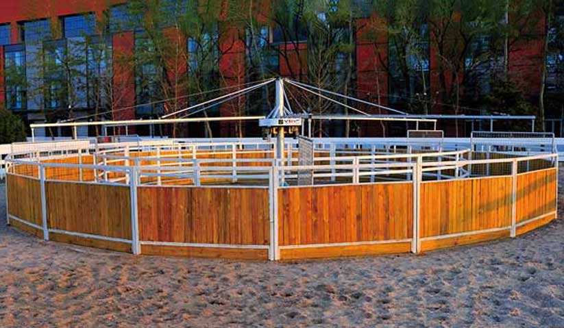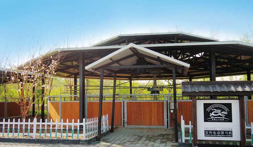 高級型遛馬機、標準型遛馬機、簡易型遛馬機、遛馬機內(nèi)外圈圍欄、全封閉屋頂、半封閉屋頂賽馬馬閘與計時系統(tǒng)